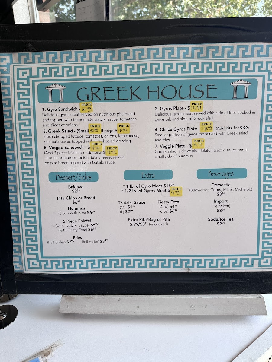 Greek House Menu