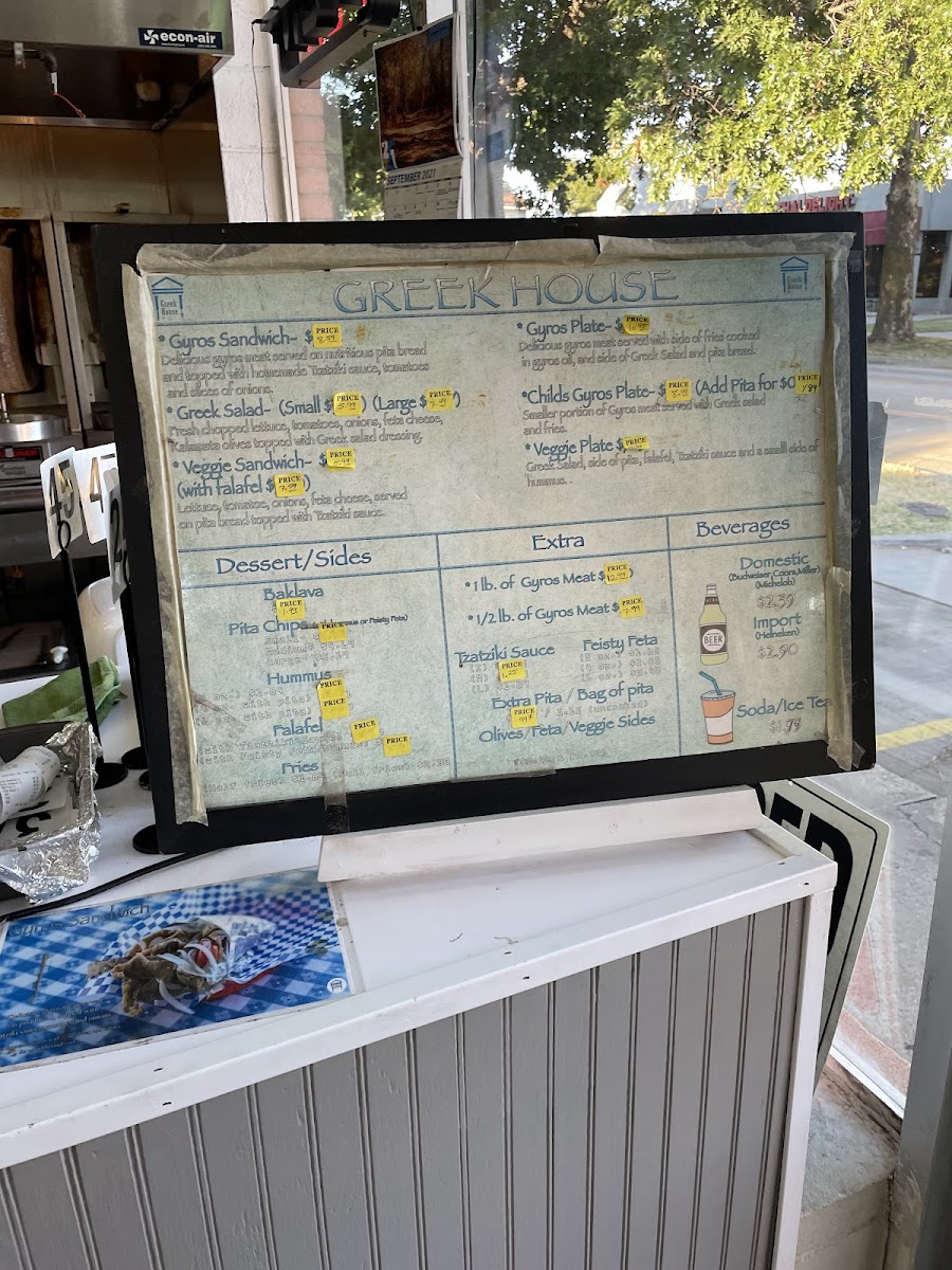 The menu at Greek House offers a focused selection of traditional Greek dishes and complementary items suited for casual dining. The food options primarily include gyro sandwiches and plates, Greek salad, and various side dishes. Gyro sandwiches feature seasoned meat served on pita bread with fresh vegetables and traditional tzatziki sauce. Plate options come with sides such as fries cooked in gyro oil and Greek salad.